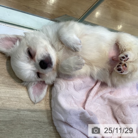 チワワ(ロング)の子犬詳細情報京都府/2025年9月25日生まれ/男の子/ホワイトクリームの子犬