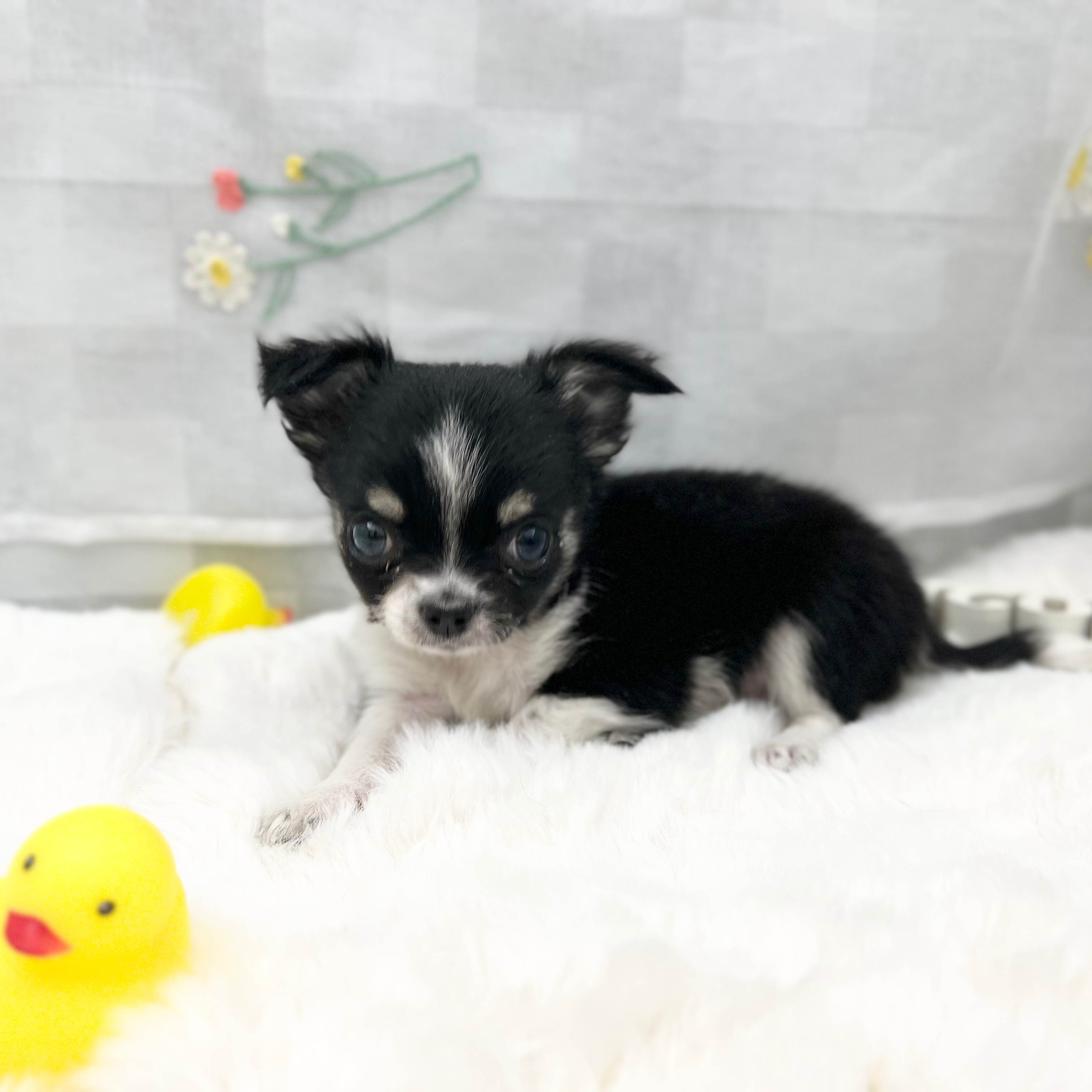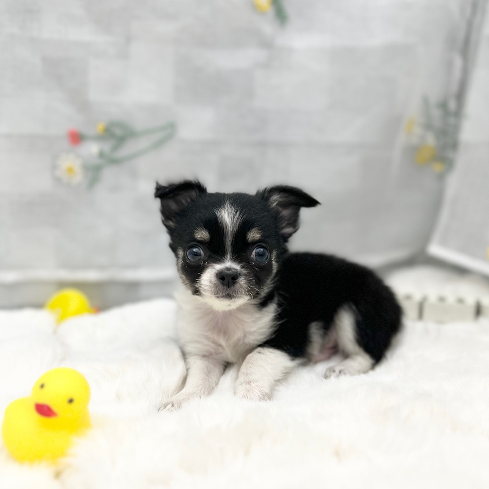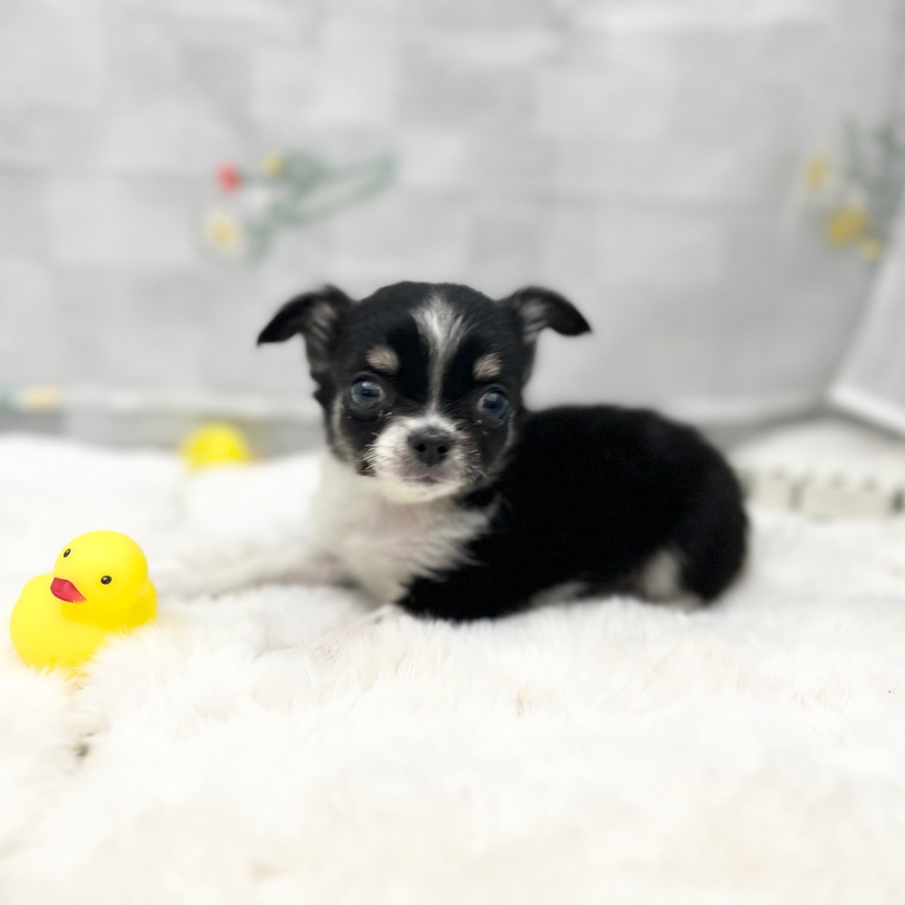 チワワ(ロング)の子犬詳細情報静岡県/2025年12月2日生まれ/男の子/ブラックタンホワイトの子犬