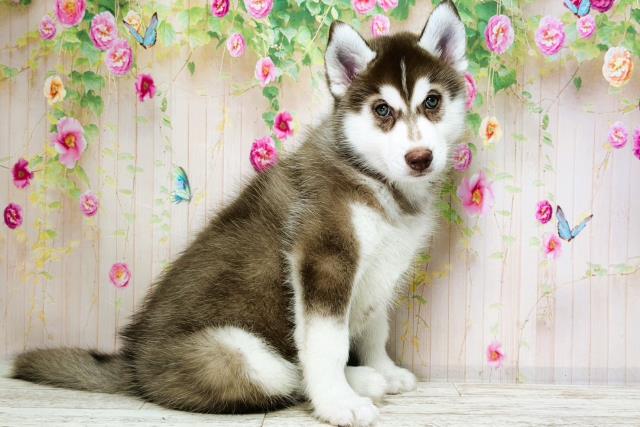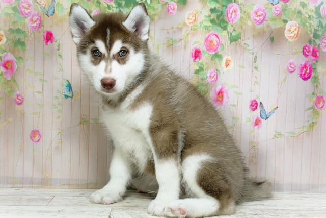 シベリアンハスキーの子犬詳細情報北海道/2025年12月3日生まれ/男の子/チョコレートホワイトの子犬