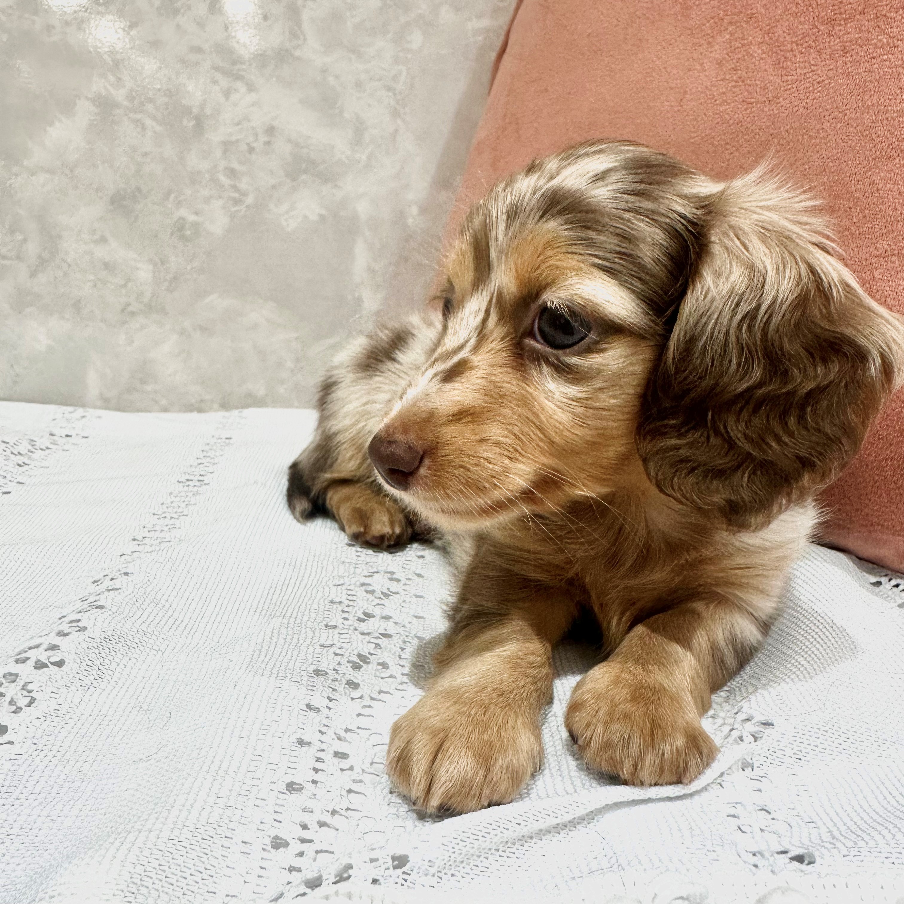 ミニチュアダックスフンド(ロング)の子犬詳細情報福岡県/2025年12月28日生まれ/女の子/チョコレートダップルの子犬