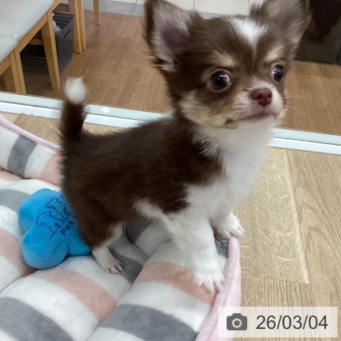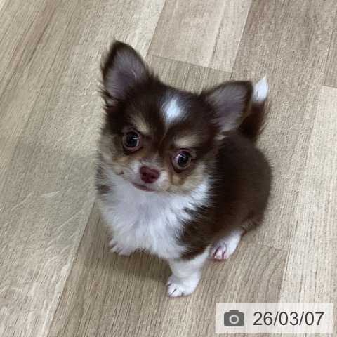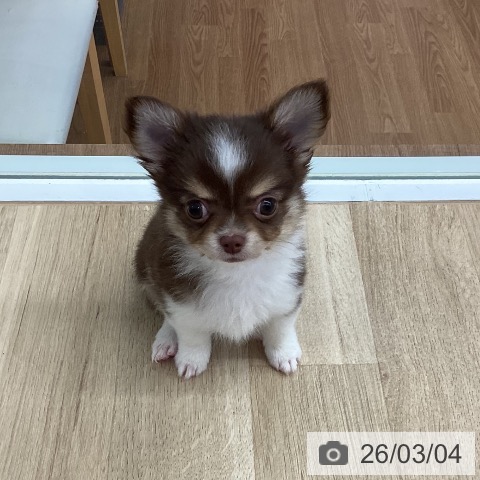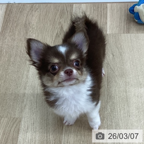 チワワ(ロング)の子犬詳細情報新潟県/2025年12月23日生まれ/男の子/チョコレートタンホワイトの子犬