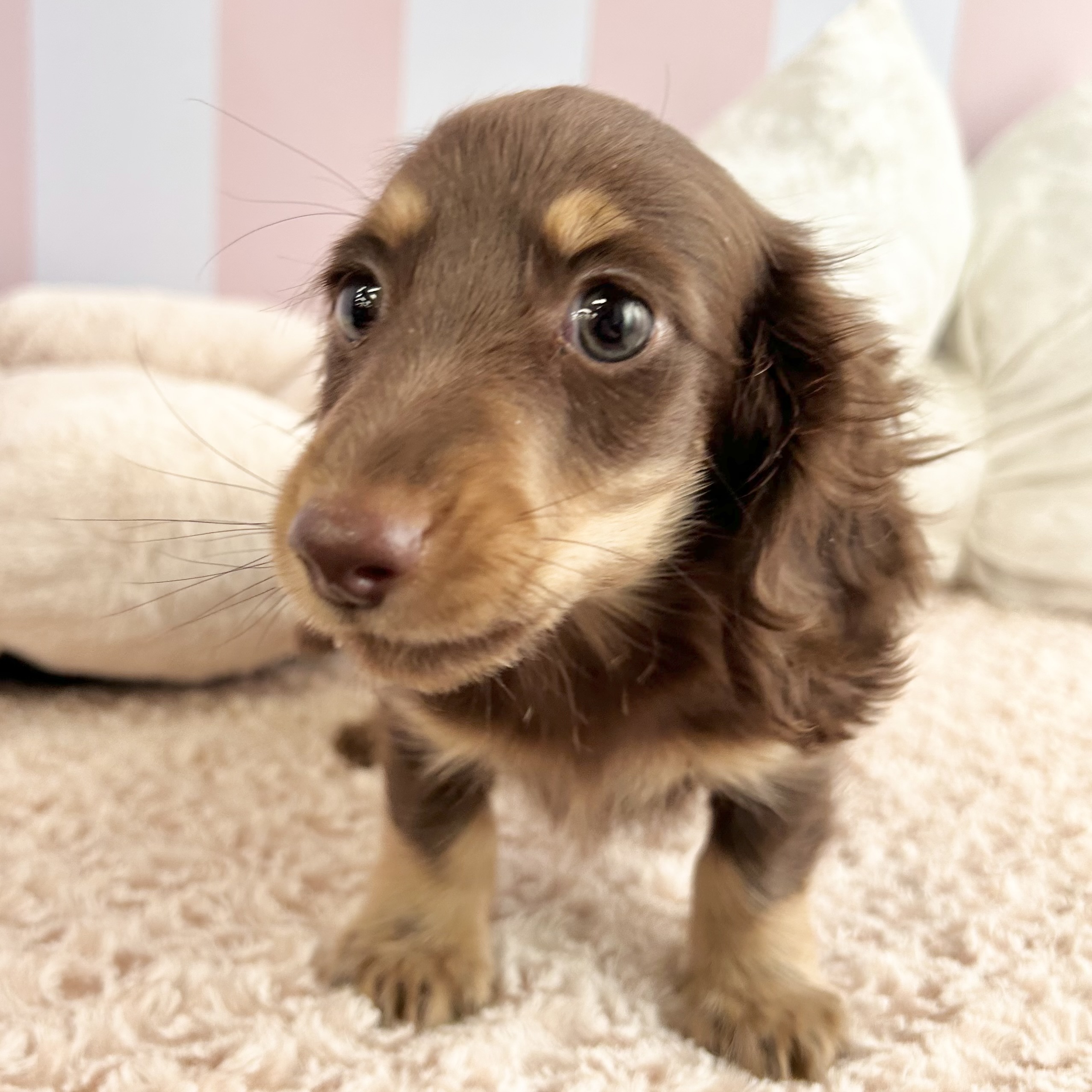 ミニチュアダックスフンド(ロング)の子犬詳細情報岡山県/2025年11月13日生まれ/男の子/チョコレートタンの子犬