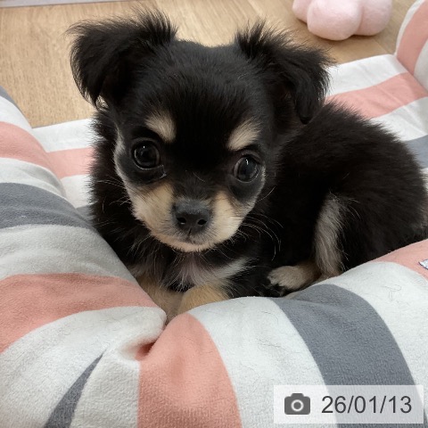 チワワ(ロング)の子犬詳細情報福岡県/2025年11月13日生まれ/男の子/ブラックタンの子犬