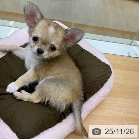 チワワ(ロング)の子犬詳細情報福岡県/2025年9月23日生まれ/男の子/レッドホワイトの子犬