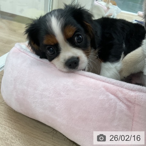 キャバリアキングチャールズスパニエルの子犬詳細情報福岡県/2025年12月16日生まれ/男の子/トライカラーの子犬