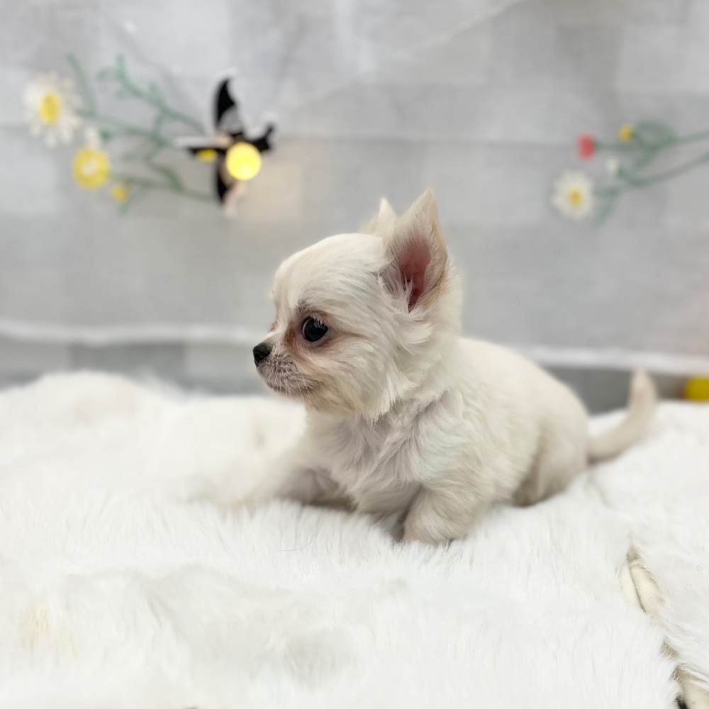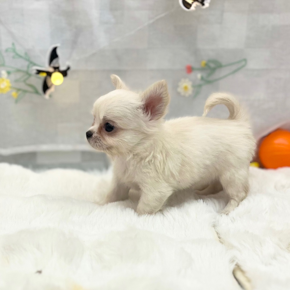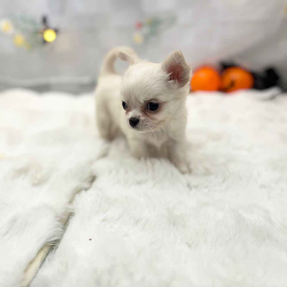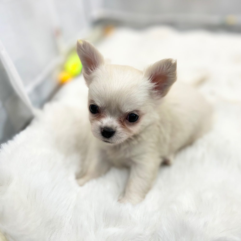 チワワ(ロング)の子犬詳細情報静岡県/2025年9月2日生まれ/女の子/ホワイトクリームの子犬