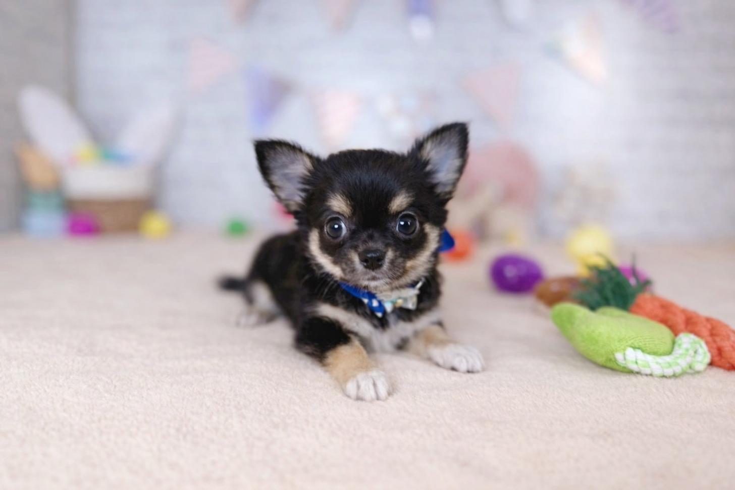 チワワ(ロング)の子犬詳細情報北海道/2026年1月26日生まれ/男の子/ブラックタンホワイトの子犬