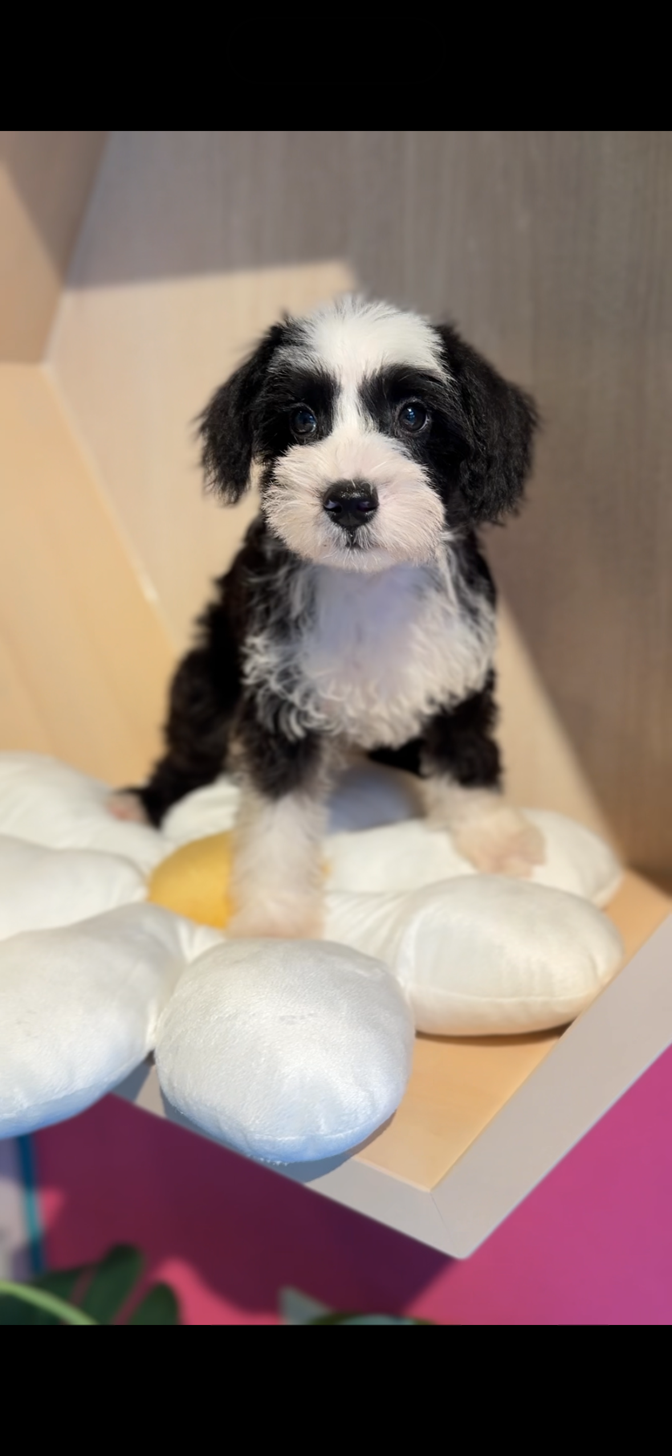 シュナプー(シュナウザー×プードル)の子犬詳細情報埼玉県/2025年7月24日生まれ/男の子/ブラックホワイトの子犬