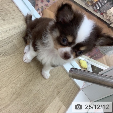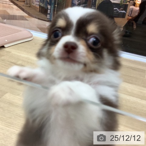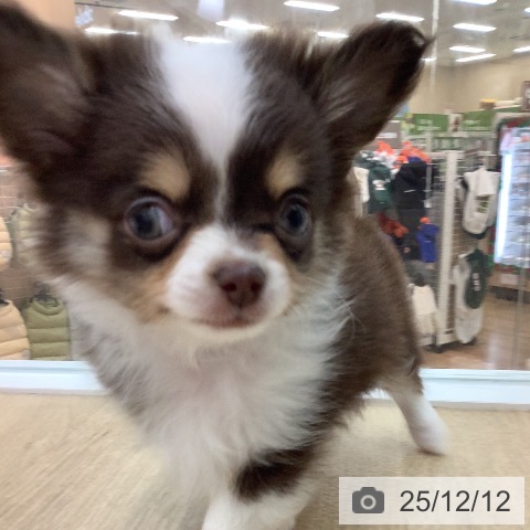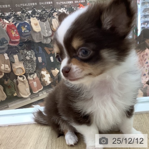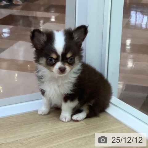 チワワ(ロング)の子犬詳細情報宮崎県/2025年10月6日生まれ/男の子/チョコレートタンホワイトの子犬