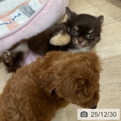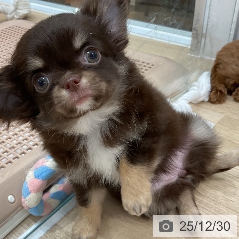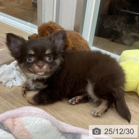 チワワ(ロング)の子犬詳細情報福岡県/2025年10月28日生まれ/女の子/チョコレートタンホワイトの子犬