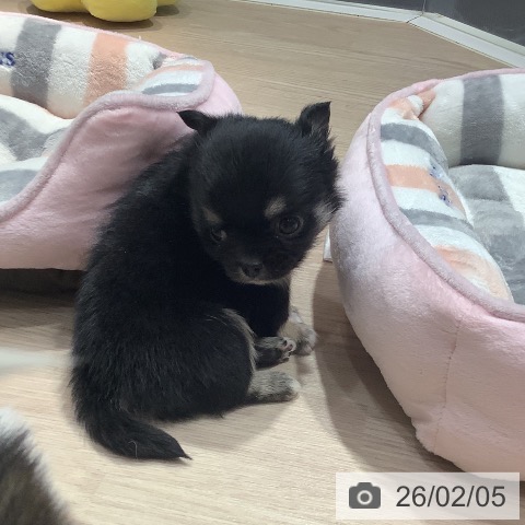 チワワ(ロング)の子犬詳細情報岡山県/2025年12月3日生まれ/女の子/ブラッククリームの子犬