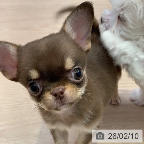 チワワ(ロング)の子犬詳細情報千葉県/2025年12月2日生まれ/男の子/チョコレートタンホワイトの子犬