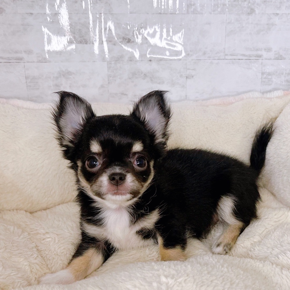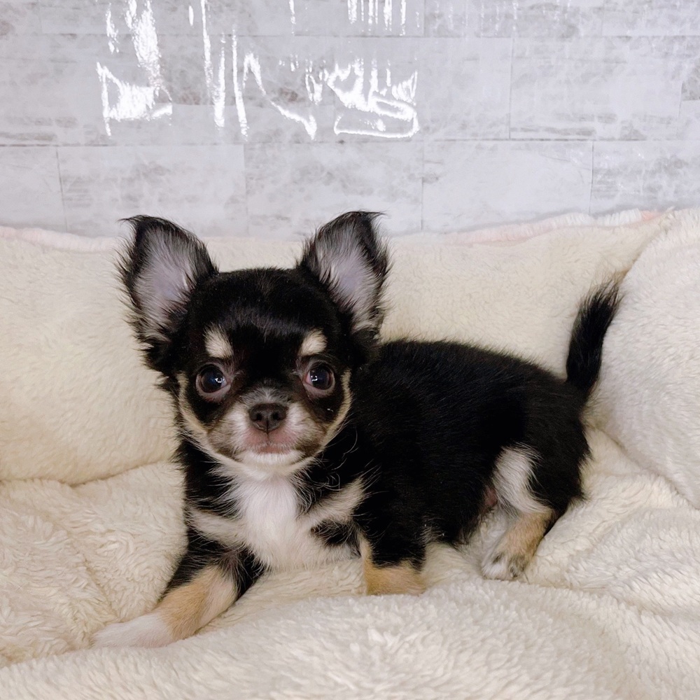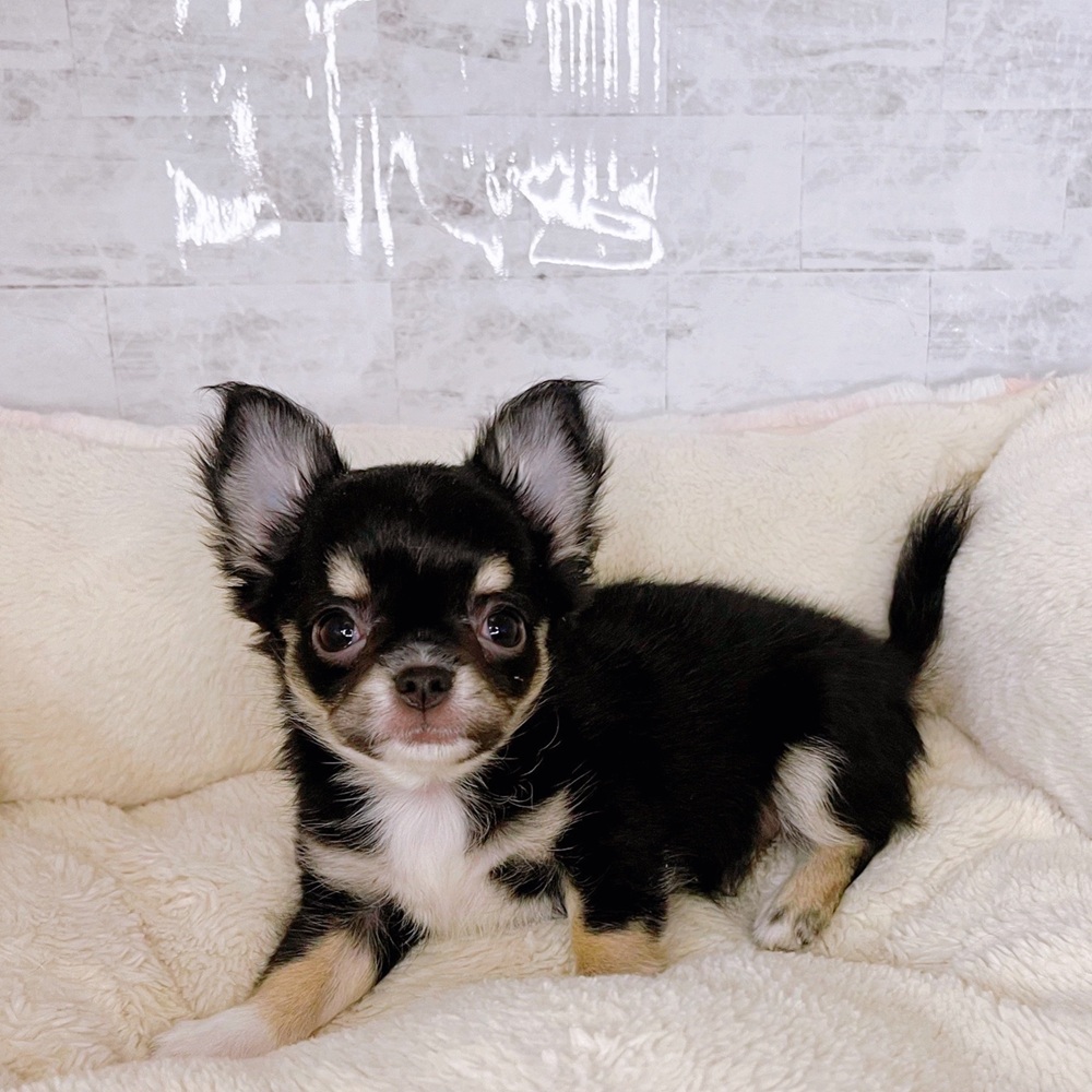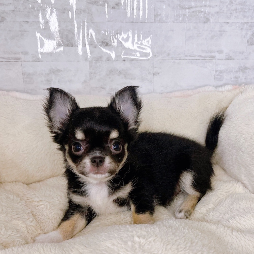 チワワ(ロング)の子犬詳細情報長野県/2025年8月27日生まれ/男の子/ブラックタンホワイトの子犬