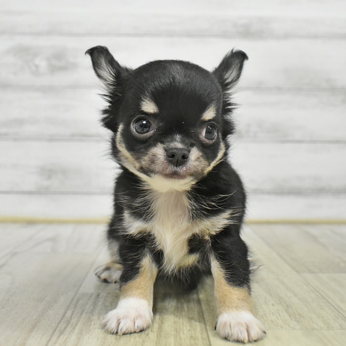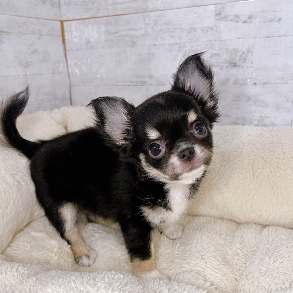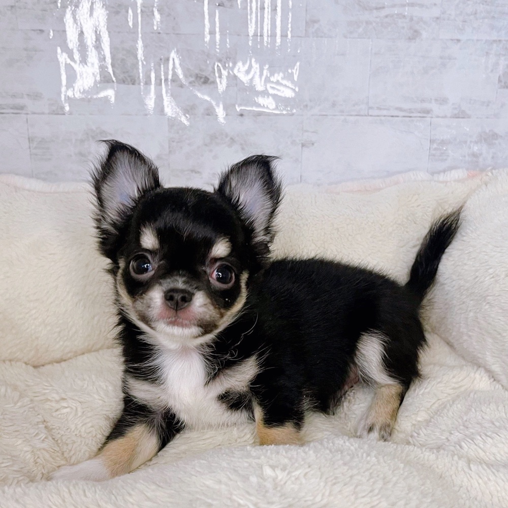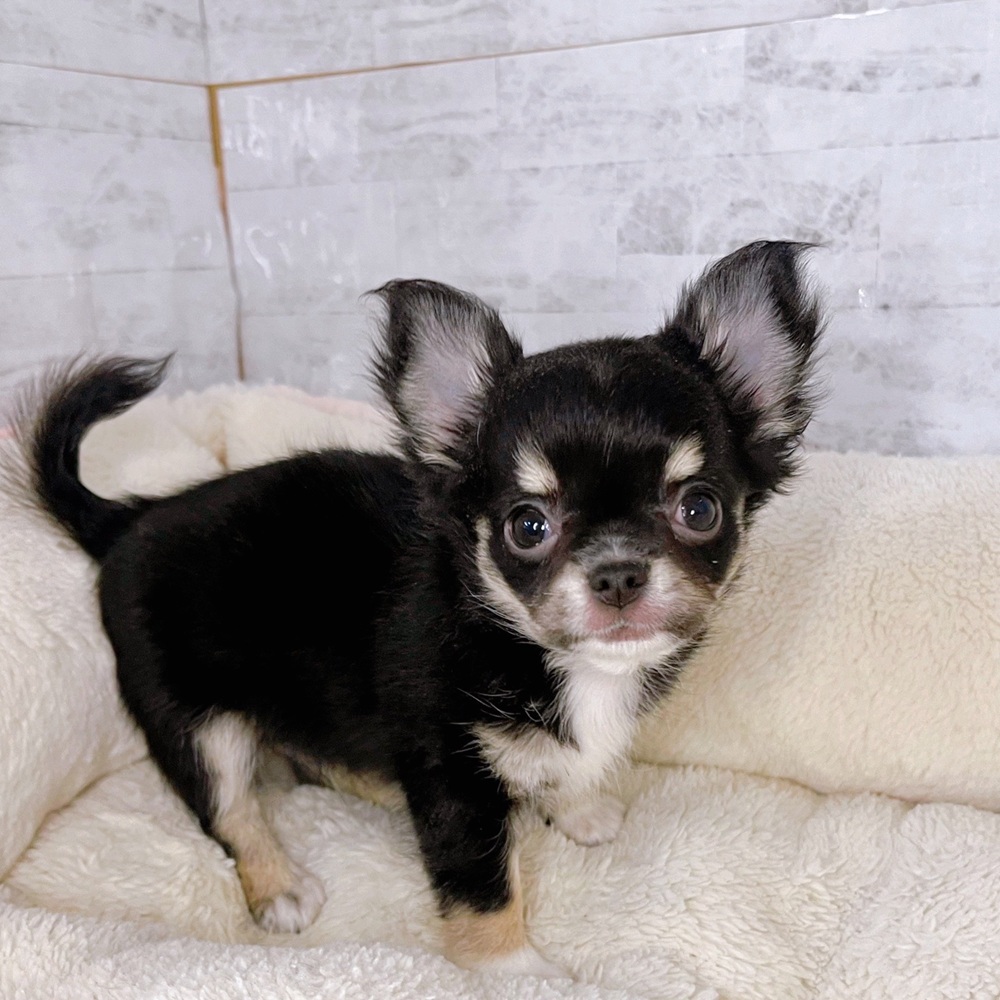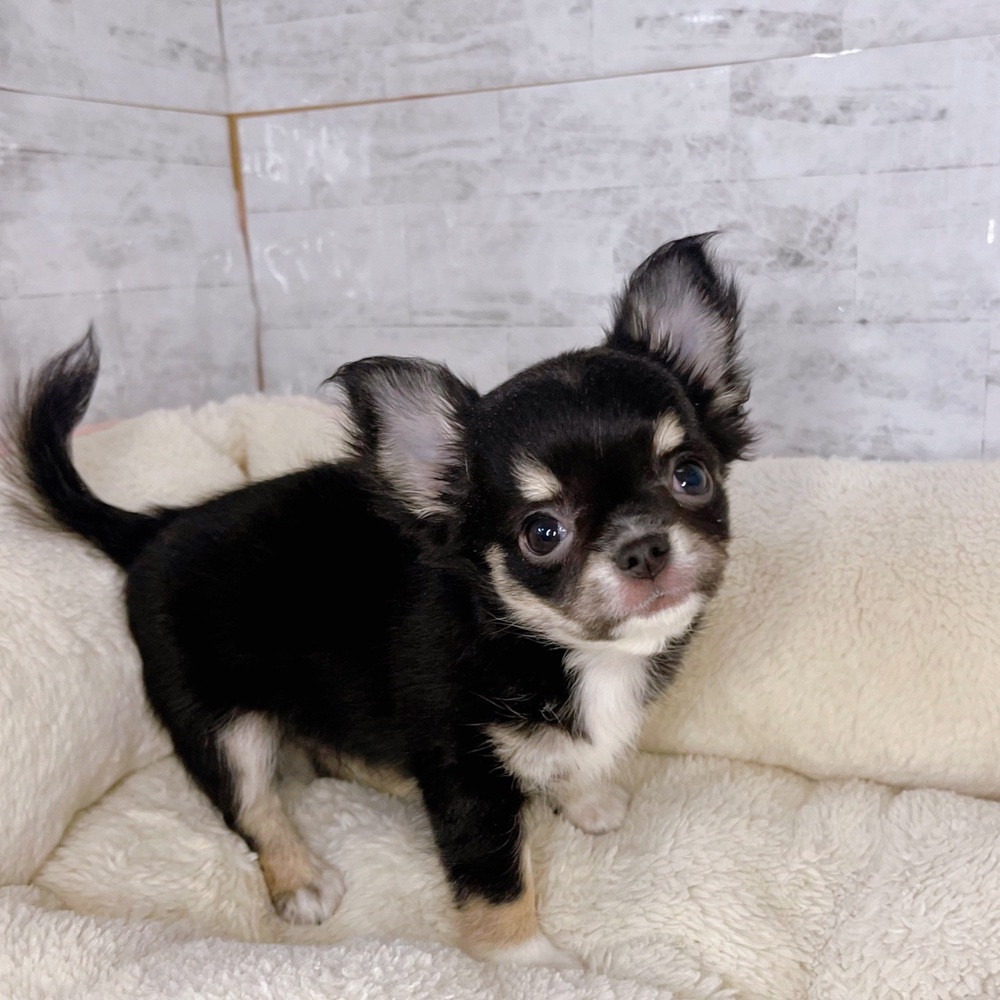 チワワ(ロング)の子犬詳細情報長野県/2025年8月27日生まれ/男の子/ブラックタンホワイトの子犬