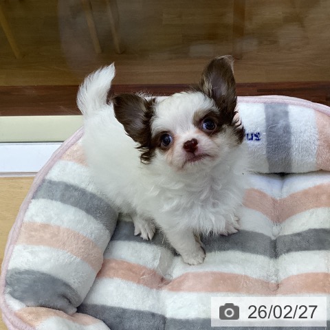 チワワ(ロング)の子犬詳細情報香川県/2025年12月25日生まれ/男の子/ホワイトチョコレートの子犬